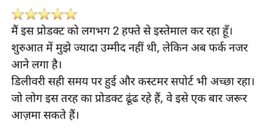 यदि आपने पहले किन्हीं दवाओं के साथ इस समस्या को हल करने की कोशिश की है, तो आप जानते हैं कि सभी प्रयास व्यर्थ रहे थे और यदि कोई प्रभाव हुआ भी, तो उससे केवल इरेक्शन में सुधार हुआ और वह भी बस अस्थायी तौर पर। अगर आप पहली बार इसका प्रयास कर रहे हैं तो आप भाग्यशाली हैं। अब आप सही तरीके के बारे में जान जाएँगे, और बहुत सारे पैसे बचा पाएंगे जो बेकार उत्पादों पर खर्च हो सकते थे। मैं आपको अपने सहायक राजेश की एक असली तस्वीर दिखाना चाहता हूँ। उसका लिंग 8.9 सेमी बढ़ गया, और संभोग की अवधि 15 मिनट बढ़ गई।